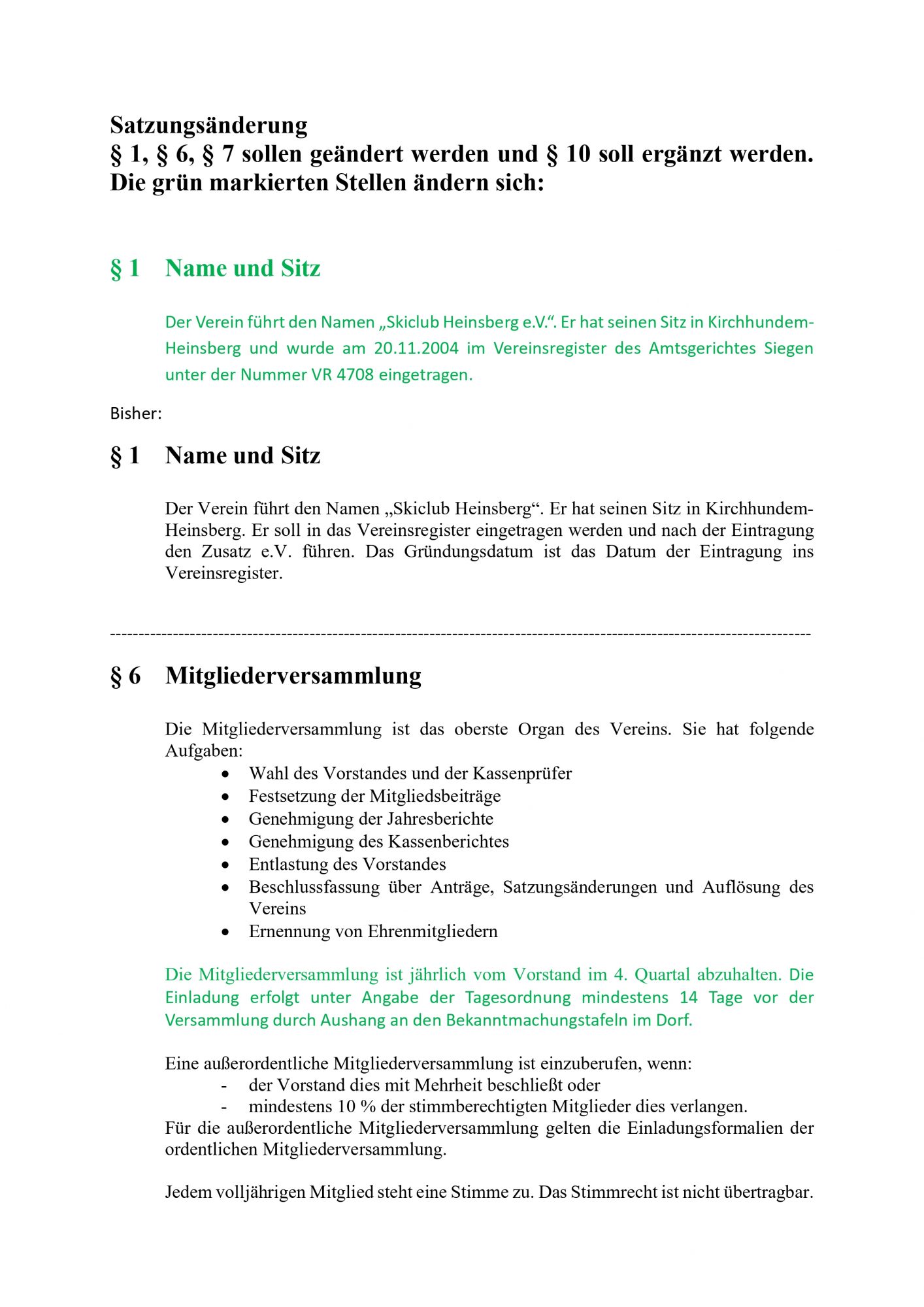 In Vorbereitung auf die Jahreshauptversammlung des Skiclub Heinsberg am 14.11.2025 im „Kuckucksnest“ (ehem. SGV-Heim) ist hier die geplante Satzungsänderung einzusehen.
